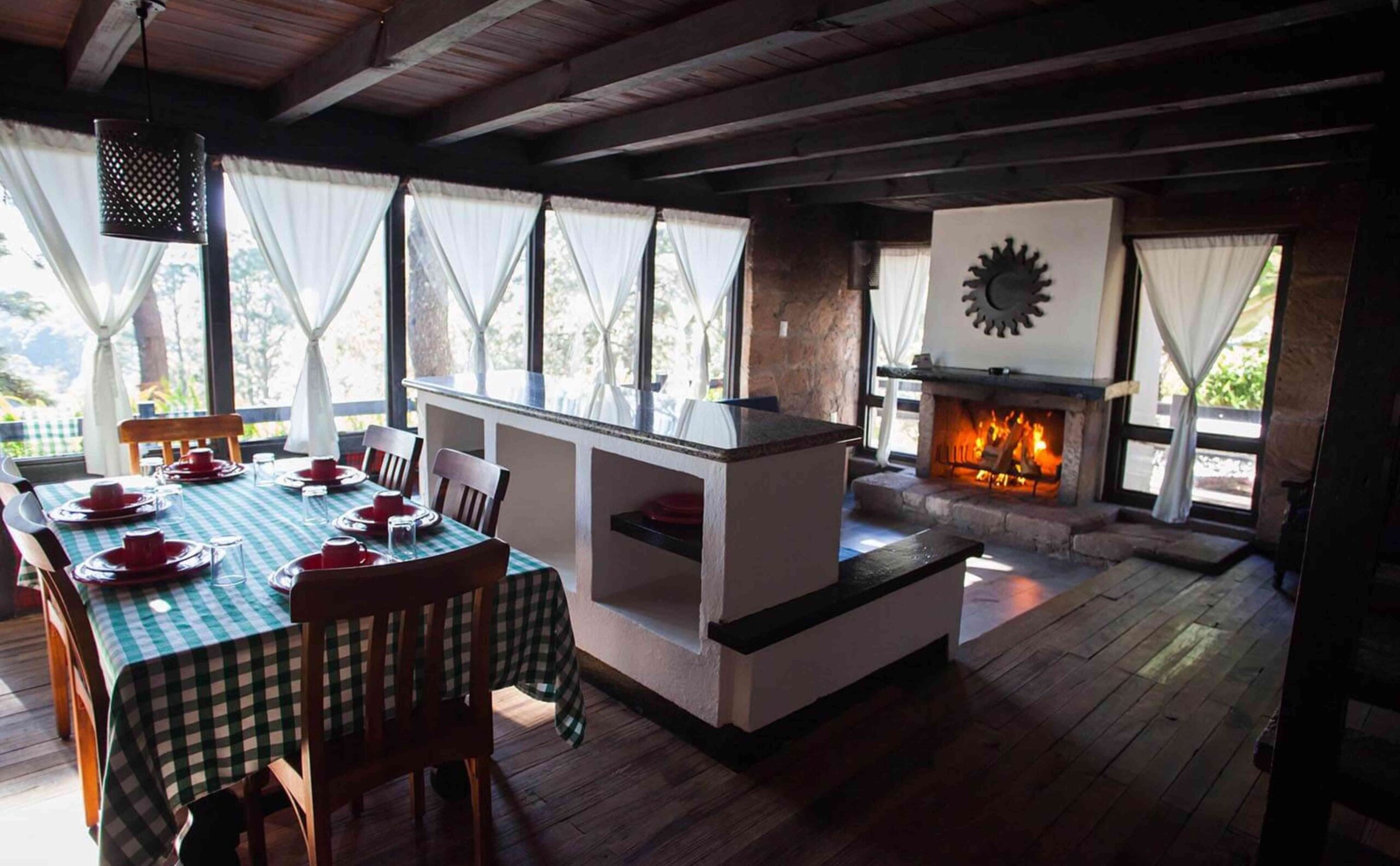 - Espacios: 2 salas, 2 chimeneas, comedor, cocina/bar